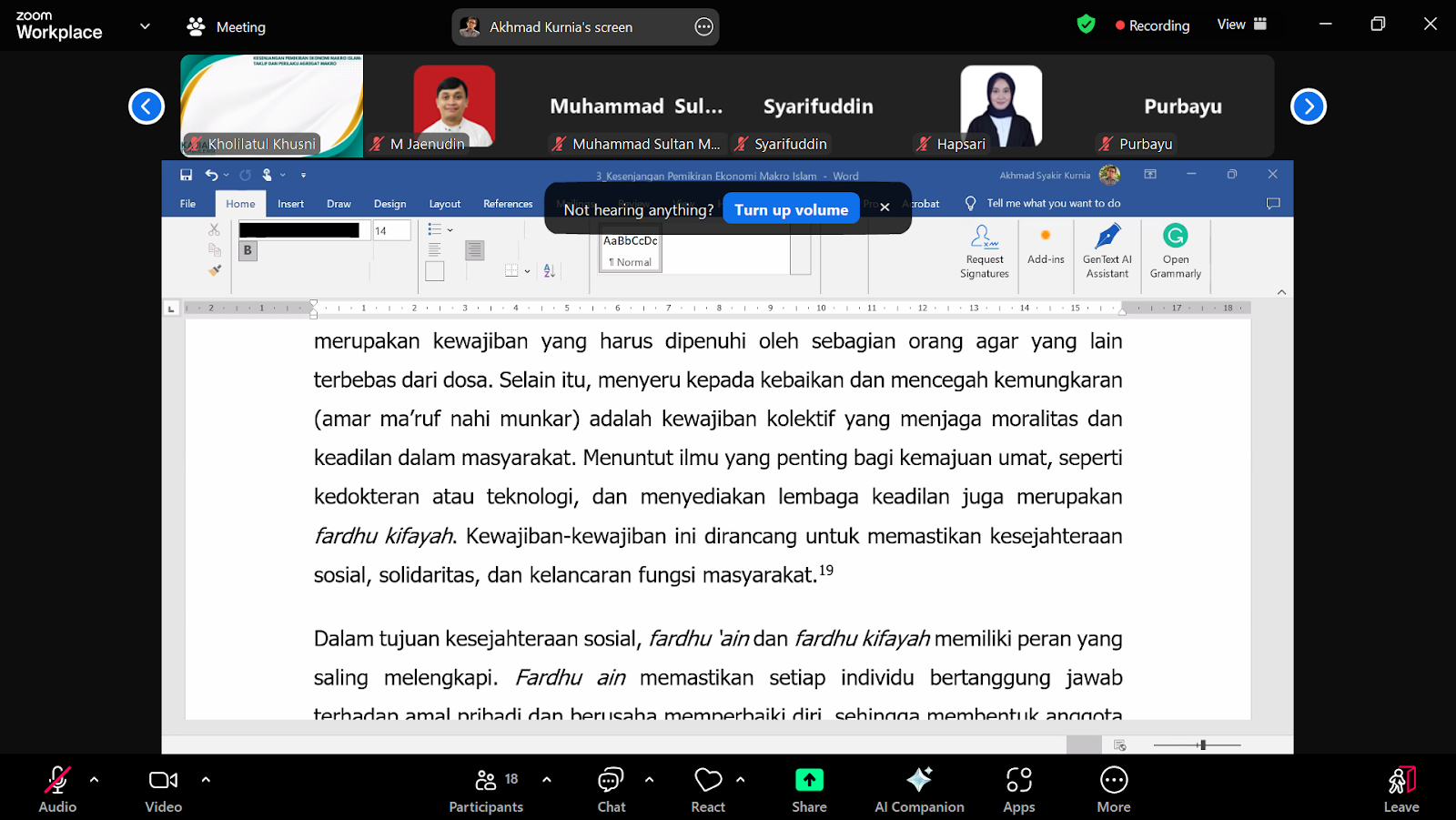 Semarang, February 21, 2025 – The Department of Economics and Development Studies held a turbulence study with the theme “The Gap in Islamic Macro Thought: Taklif and Macro Aggregate Behavior”. This event presented Prof. Akhmad Syakir Kurnia, S.E., M.Si., Ph.D as the main speaker and Mesi Herawati, S.E., M.E. as the moderator. This study was held offline in the Meeting Room of Building C, Economics Study Program, Diponegoro University (Undip), and online via the Zoom platform, allowing wider participation from various academics and students.