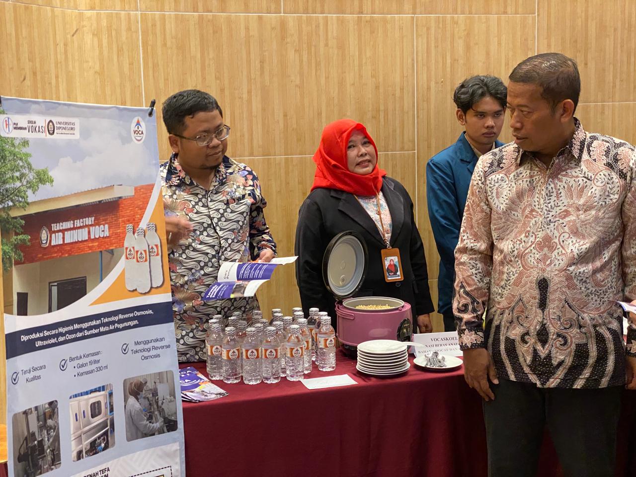 Rektor UNDIP, Prof. Suharnomo mengunjungi stand Voca (air minum produksi Vokasi UNDIP)