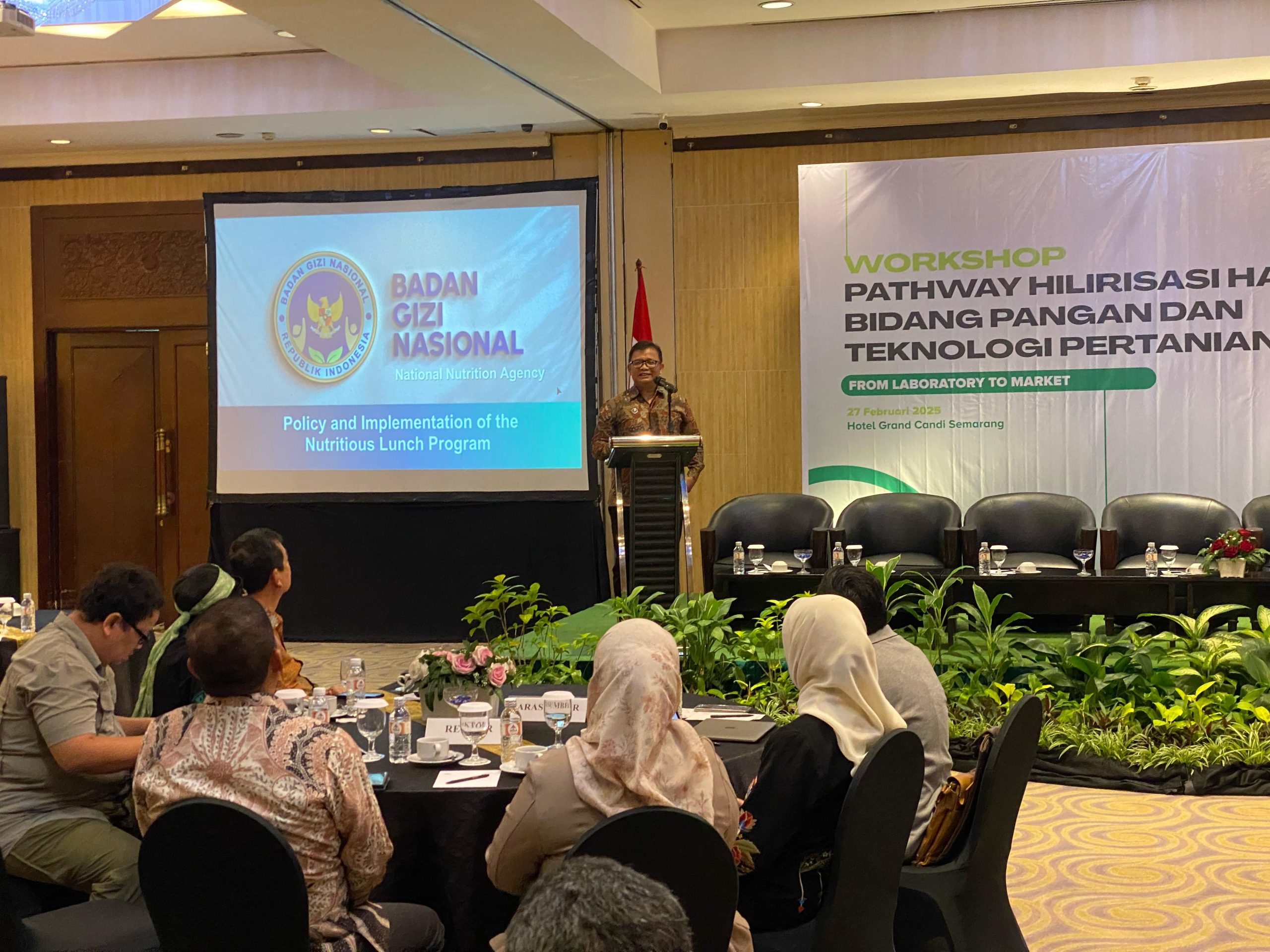 Semarang, 27 Februari 2025 bertempat di Hotel Grand Candi Hotel, Universitas Diponegoro (UNDIP) mengadakan workshop bertajuk “Pathway Hilirisasi Hasil Riset Bidang Pangan dan Teknologi Pertanian: From Laboratory to Market”. Acara ini menghadirkan berbagai narasumber ahli di bidang pangan dan teknologi pertanian dengan tujuan memperkuat hilirisasi hasil riset agar lebih dekat dengan masyarakat serta memiliki nilai tambah yang lebih besar. Acara dibuka oleh Rektor UNDIP Prof. Dr. Suharnomo, S.E., M.Si. dan drh. Dian Wahyu Harjanti, Ph.D selaku Direktur Inovasi, Hilirisasi, dan Kerjasama, UNDIP. Keynote speaker dalam workshop ini adalah Deputi Bidang Sistem dan Tata Kelola Badan Gizi Nasional, Tigor Pangaribuan yang membuka berkaitan dengan hubungan riset bidang pangan dengan program – pemerintah yang mendukung ketahanan pangan.