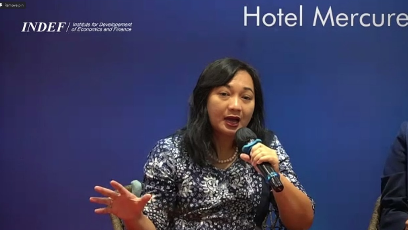 Ketua INDEF, Esther Sri Astuti, S.A., Ph.D saat memaparkan presentasinya