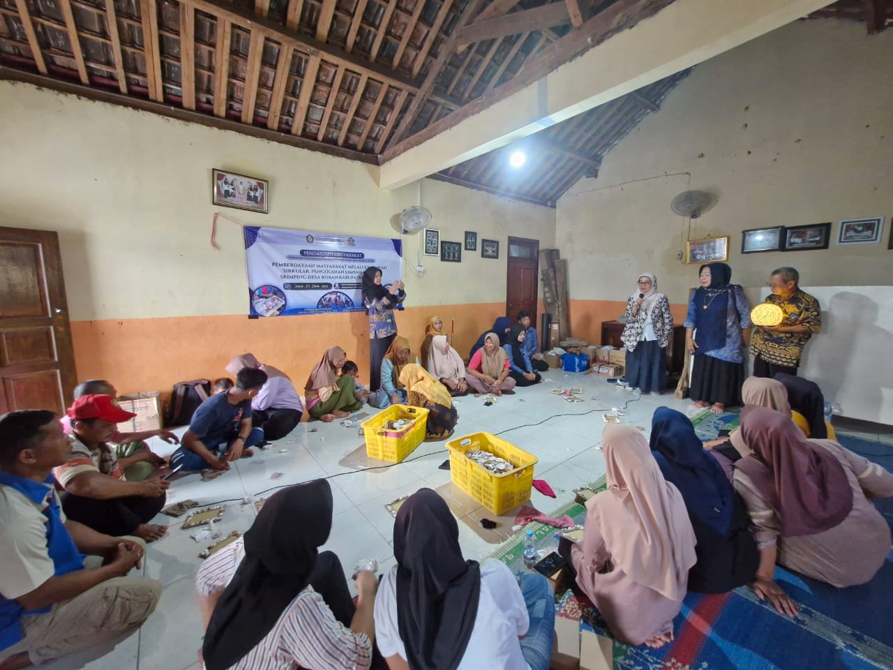 Kabupaten Batang, 25 Oktober 2024, 3 Dosen FEB Undip, yaitu Prof Indah Susilowati, Prof Waridin, dan Prof Nugroho SBM, 2 Dosen FPIK Undip yaitu Dr. Ir. Jusup Suprijanto dan Dr. Ita Widowati dan 9 mahasiswa serta masyarakat nelayan mengadakan kegiatan pelatihan mengenai pemanfaatan limbah srimping di Desa Roban Barat. Masyarakat antusias mengikuti kegiatan pelatihan ini dimana terlihat dari keaktifan mereka dalam berdiskusi dan keseriusan dalam setiap tahap pelatihan, mulai dari persiapan hingga proses finishing. Tujuan dari pelatihan ini adalah adanya  pemanfaatkan potensi limbah kerang sriping sebagai peluang usaha kreatif yang mendukung peningkatan ekonomi lokal. Diharapkan program ini dapat diberikan kesempatan untuk keberlanjutan program lainnya.