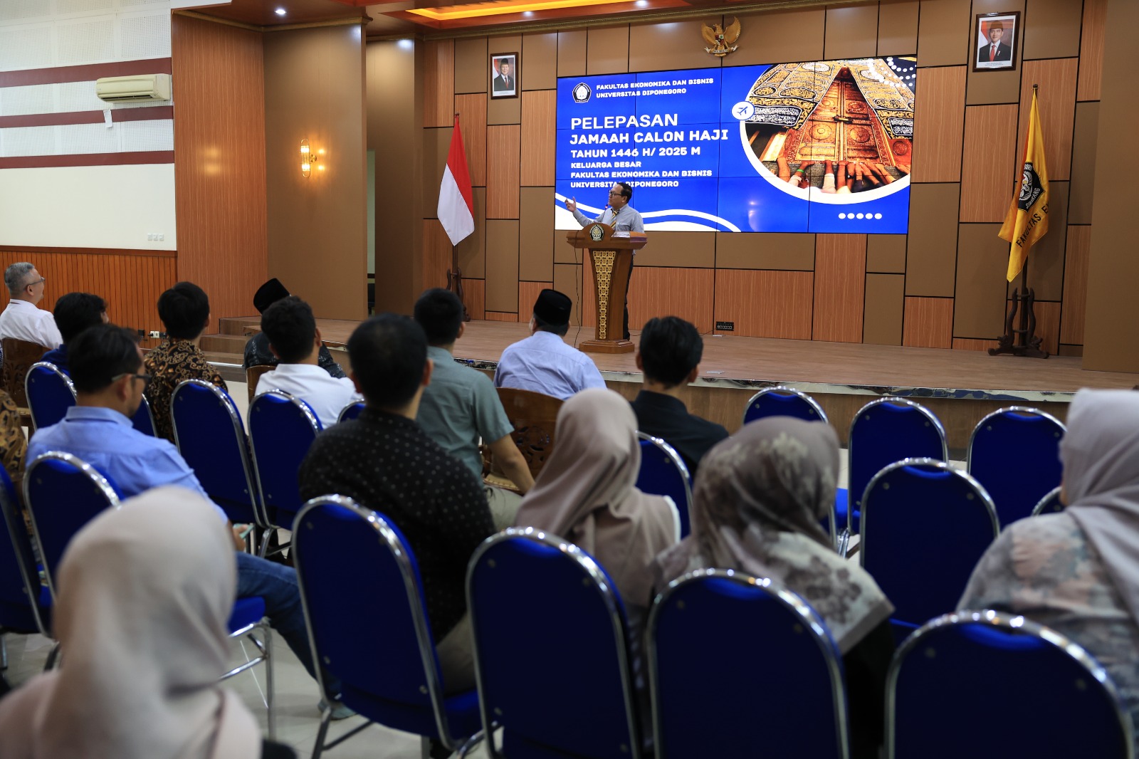 Semarang, 14 Mei 2025 — Dengan penuh rasa syukur ke hadirat Allah SWT, keluarga besar Fakultas Ekonomika dan Bisnis Universitas Diponegoro (FEB UNDIP) menyelenggarakan acara Pelepasan Jamaah Calon Haji Tahun 1446 H / 2025 M yang berlangsung khidmat pada Rabu, 14 Mei 2025, bertempat di Hall Pertamina, Gedung Dekanat Lantai 3 FEB UNDIP.