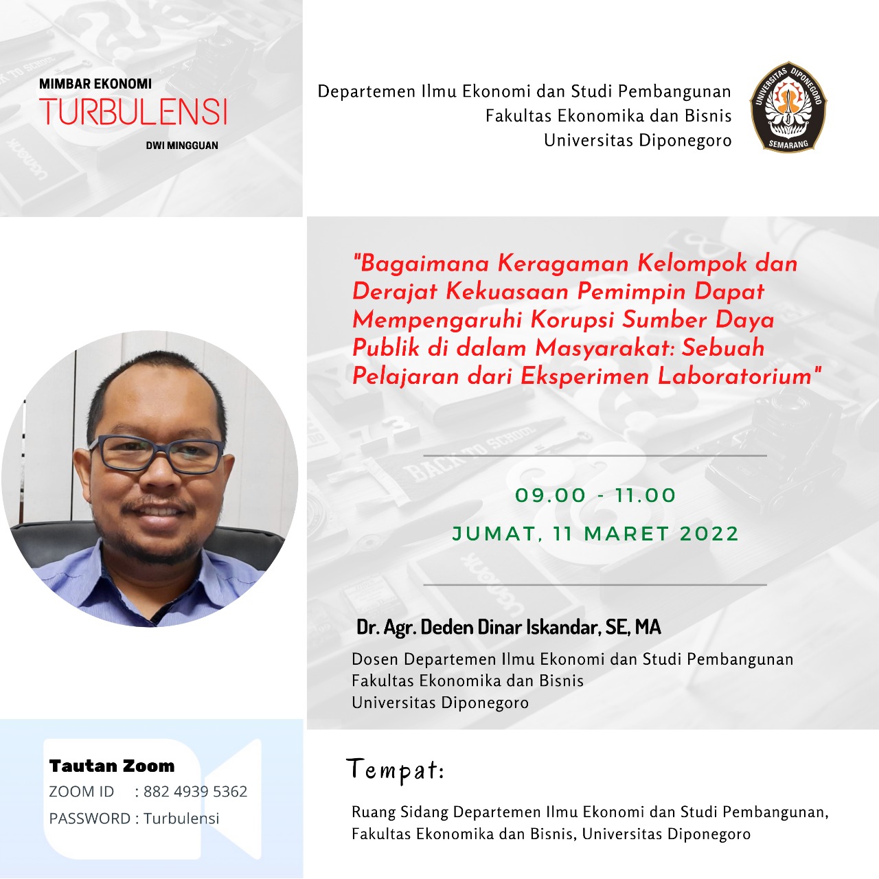 Prodi Ekonomi FEB UNDIP Gelar Webinar Kewirausahaan Mandiri dan Sosialisasi Beasiswa LPDP